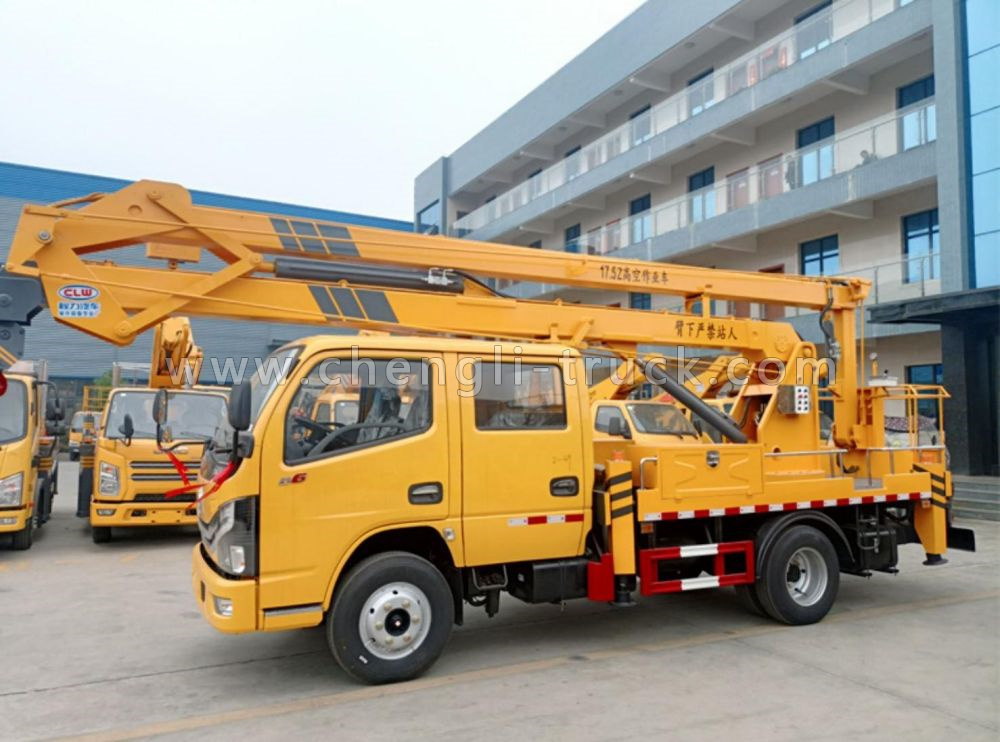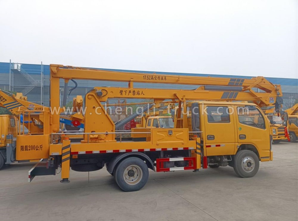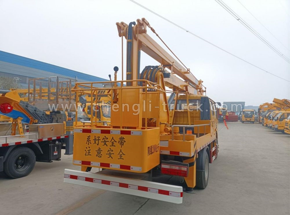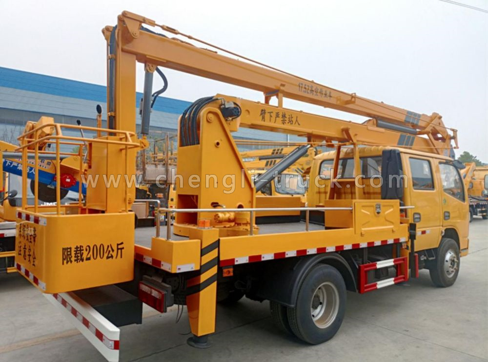 Aerial platform truck is a aerial working vehicle that is controlled by a hydraulic or electric system with a plurality of hydraulic cylinders. With lifting boom, aerial platform truck can lift 800kg heavy objects.