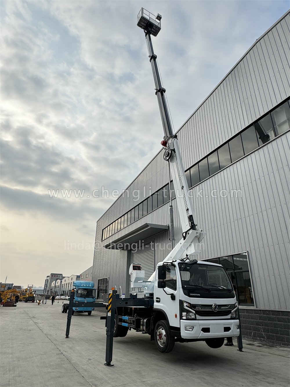 Aerial work truck refers to a special vehicle which work at high altitude (more than three meters), use a hydraulic or electric system multi-vessel hydraulic cylinders, can do up and down lifting operations, transport staff and equipment to the site, conduct high altitude operations, it is a modern advanced mechanical species equipment.