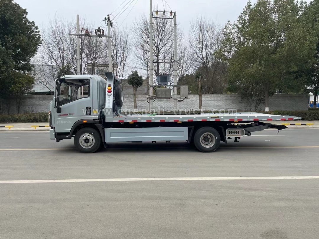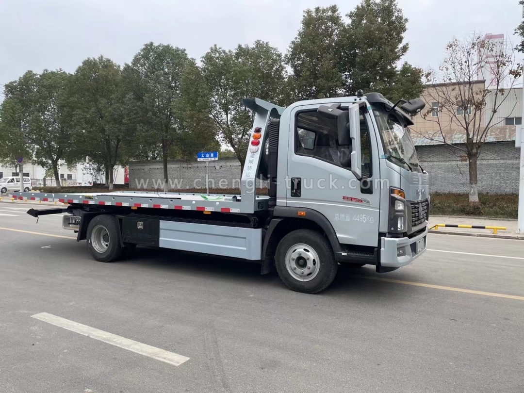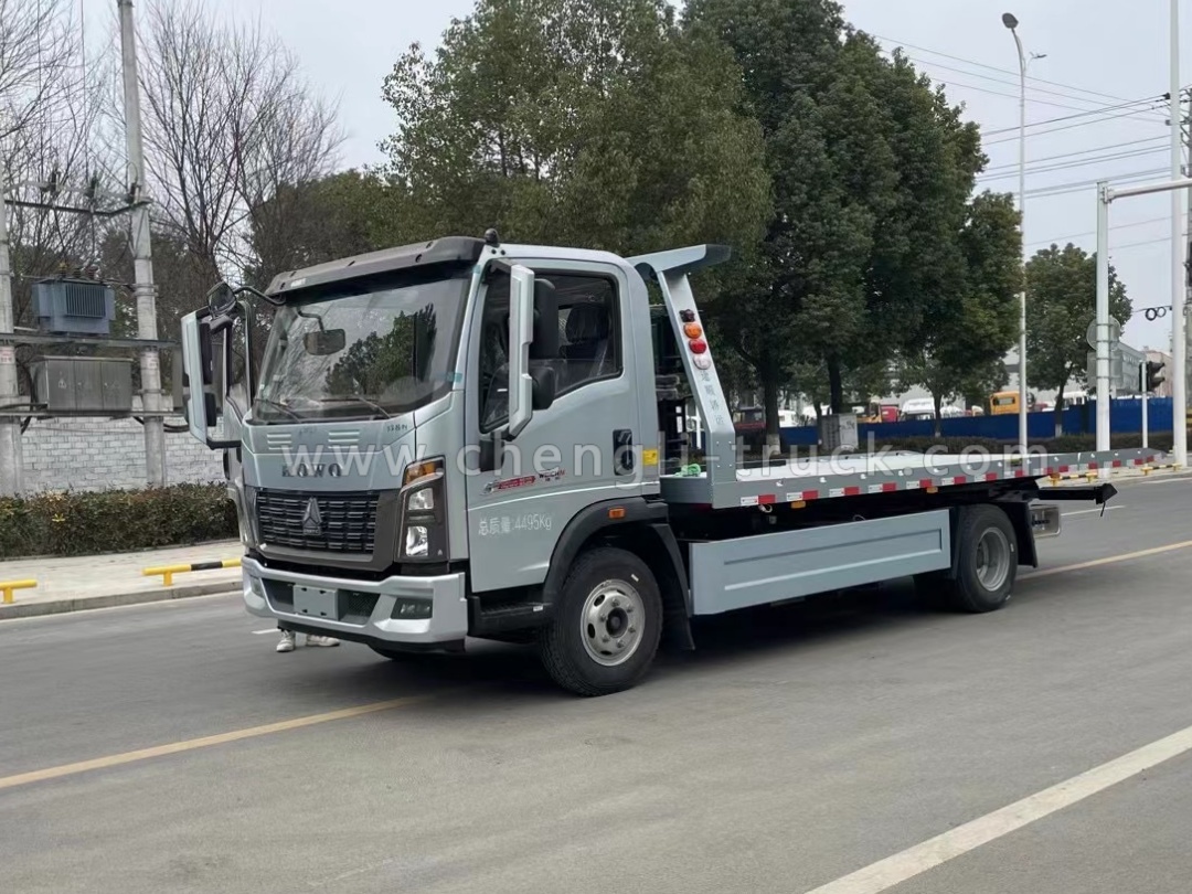 HOWO platform 5600*2300 tow truck tray 4 ton hydraulic winch 4x2 flatbed wrecker